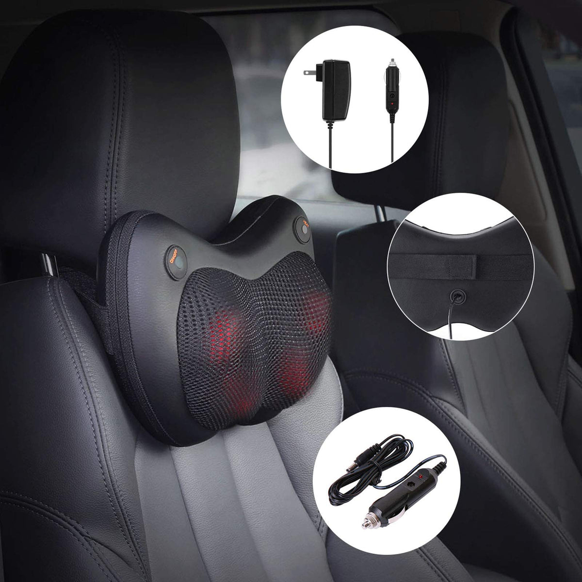 Perfect for Car and Home: With the adjustable straps you can fasten this massage pillow on the car seat or chair and enjoy a comfortable massage wherever you are. It comes with home and car adapters.